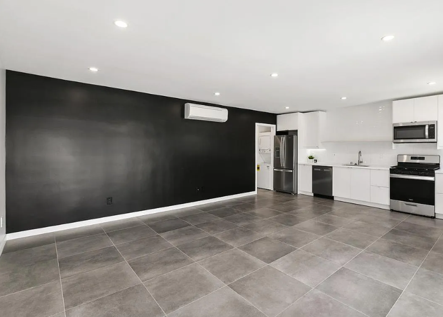 Edgy design with a true black accent wall, with art piece, night lights, in-unit washer and dryer, and a walk-in European shower featuring a stylish glass barn door and exquisite Italian porcelain floors. Stay organized with well-designed California closets and enjoy the brand new split system air conditioning throughout the unit.